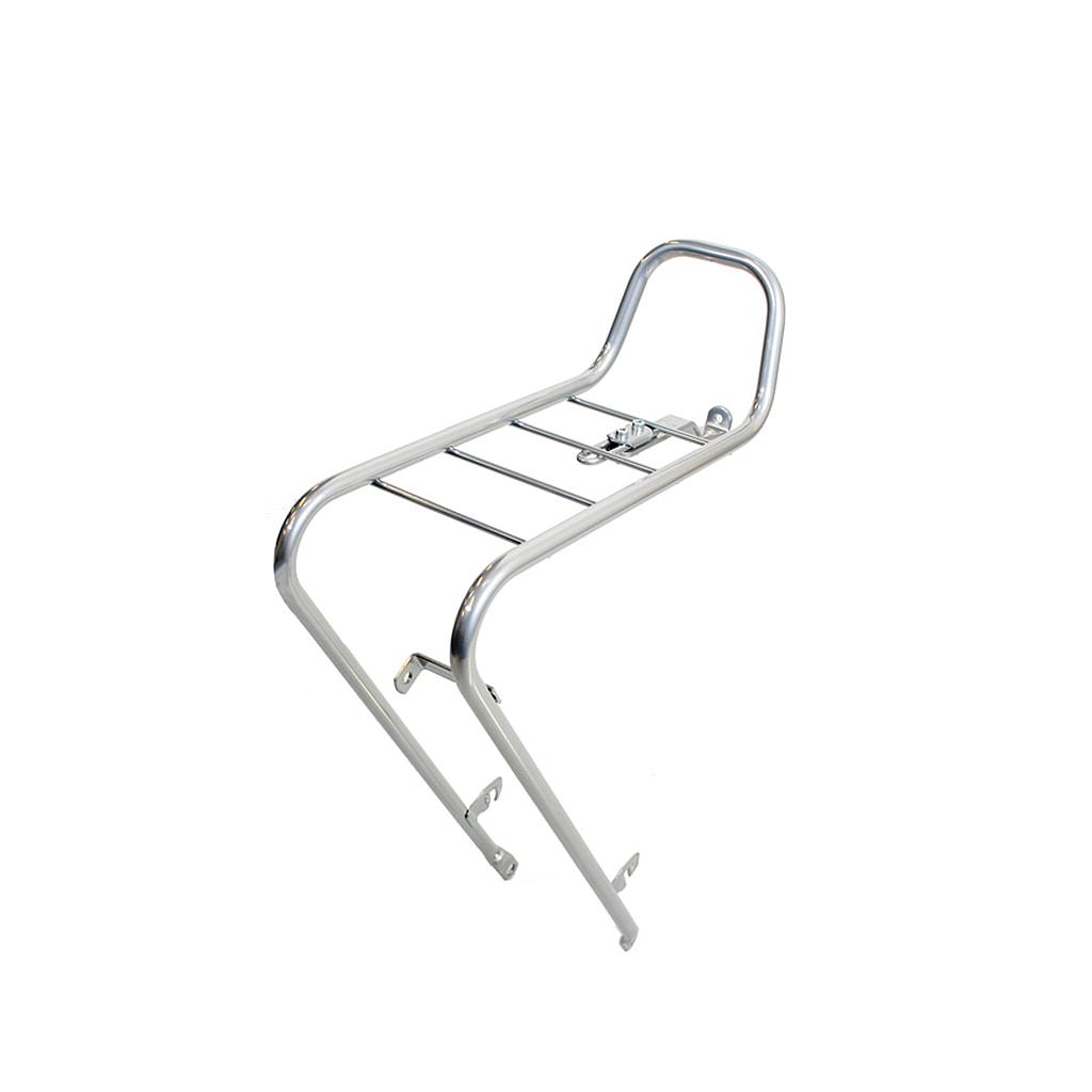 Small and light front carrier for your basket or crate, with a strong coating.